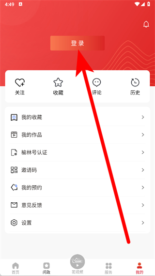 1、打开榆林发布,点击页面底部的我的,进入个人页面。
