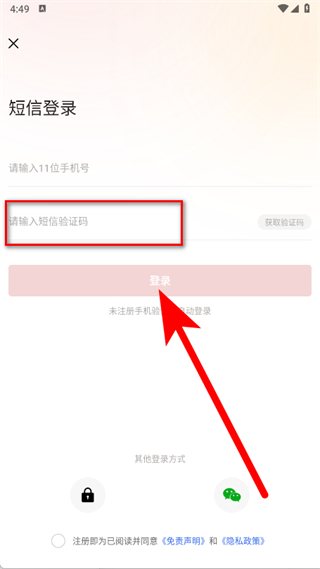 4、输入收到的验证码,点击登录按钮,完成注册登录。