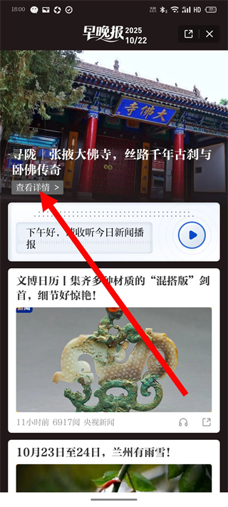 2、在早晚报页面中,点击新闻下方的查看详情,进入详情页。