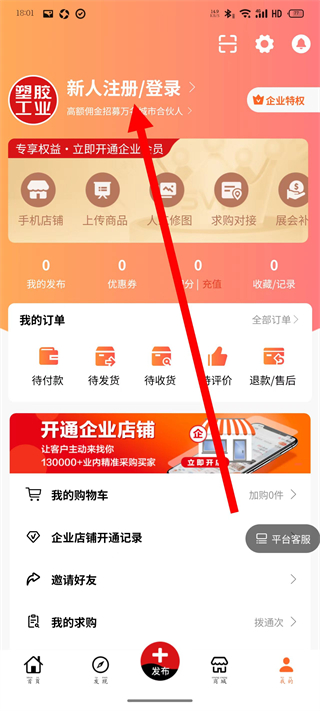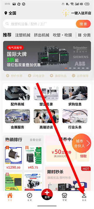 1、打开塑胶工业,点击页面底部的我的,进入个人页面。