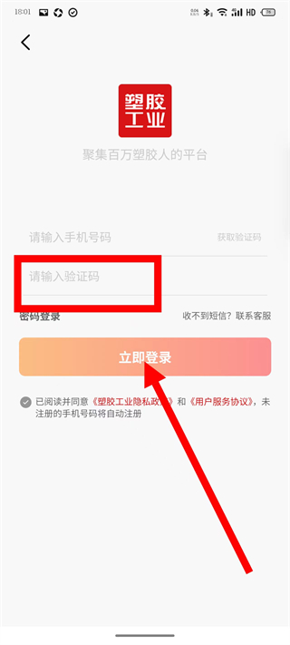 4、输入收到的验证码,点击立即登录按钮,完成注册登录。