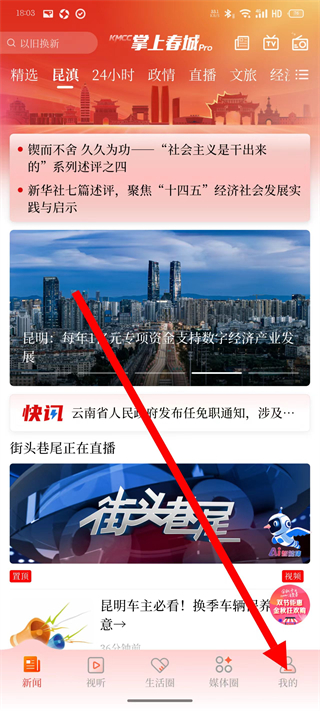 1、打开掌上春城,点击页面底部的我的,进入个人页面。