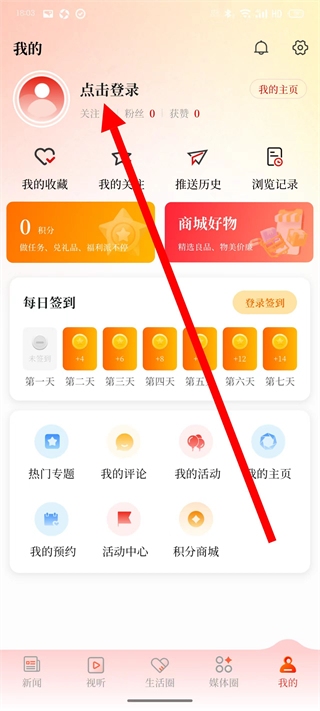 2、在个人页面中,点击点击登录区域,进入登录页面。