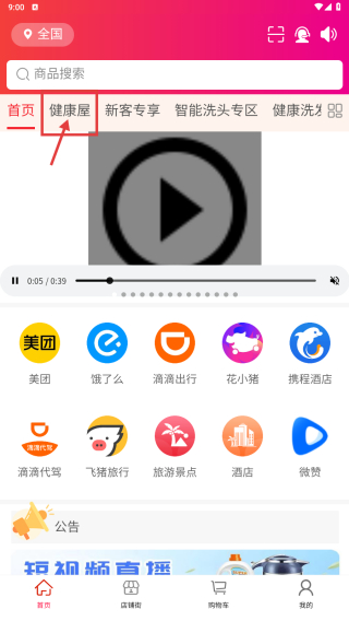 1、打开本地生活服务应用,点击首页健康屋分类,进入健康屋商品列表页面。