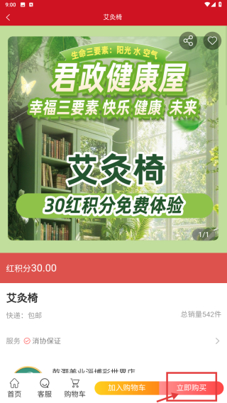 4、在商品详情页,点击立即购买按钮,完成艾灸椅的购买操作。