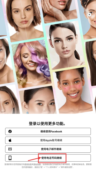 3、在登录方式选择界面,点击使用电话号码继续选项,进入手机号登录页面。