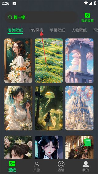 1、点击页面上方INS风格标签,可进入INS风格壁纸板块。