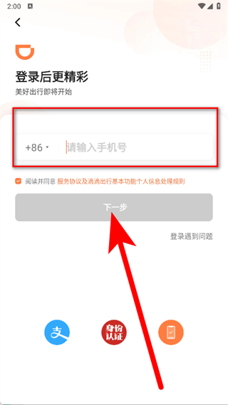3、在登录页面,输入手机号码,点击下一步,获取验证码。