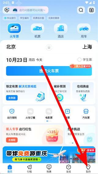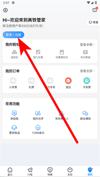 1、打开高铁管家,点击底部导航栏最右侧的我的。