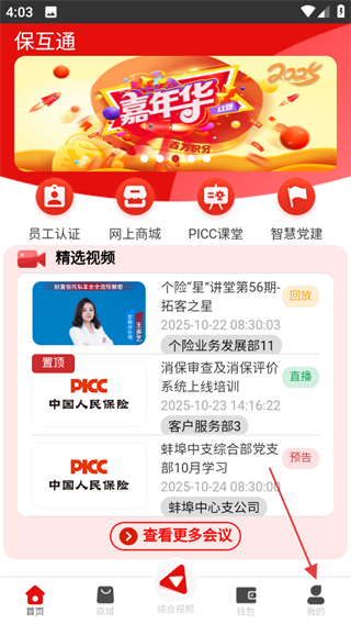 1、打开保互通,点击页面右下角我的,可进入个人中心页面。