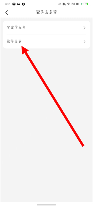4、进入页面后,点击账号注销选项,进入注销账号说明页面。