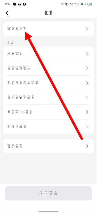 3、在设置页面,选择账户与安全,进入账户安全管理界面。