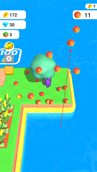2、收集掉落的苹果,增加苹果数量,为后续售卖做准备。