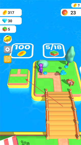 3、通过桥梁前往新的农场区域,拓展农场可开发的土地。