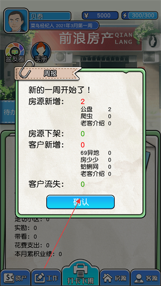 1、每周开始时会有周报提示,显示房源、客户的新增和流失情况,点击确认进入本周工作。