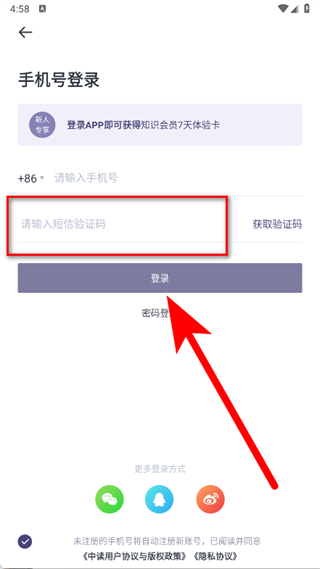 4、输入收到的验证码,点击登录按钮,完成登录操作。
