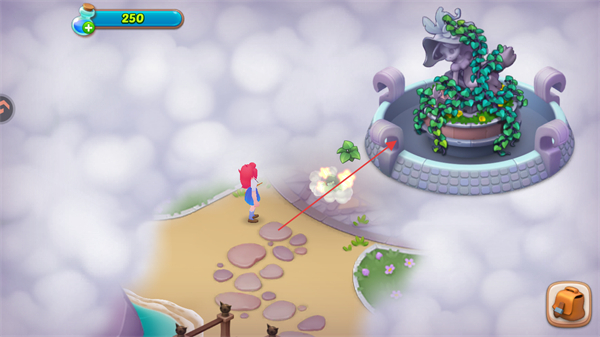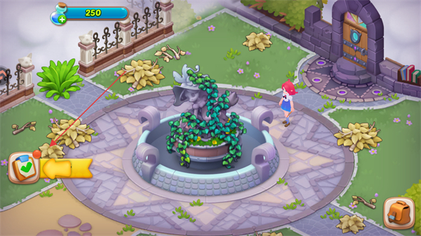 3、靠近被藤蔓覆盖的建筑如喷泉雕塑,清理周围的障碍物,解锁建筑的更多细节。