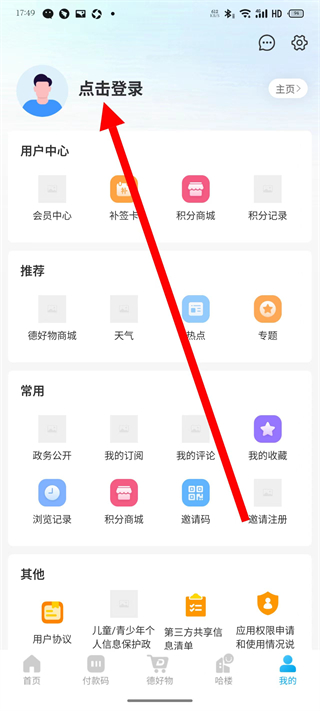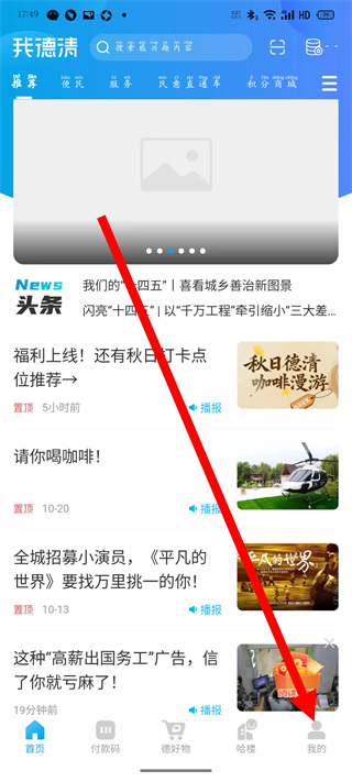 1、打开我德清,点击底部导航栏最右侧的我的,进入个人中心页面。