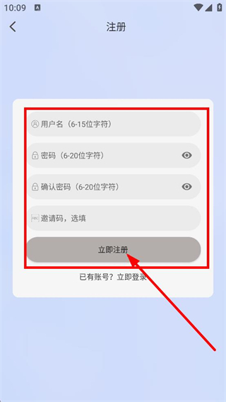 4、在注册页面,填写密码、确认密码,点击立即注册,完成账号注册。