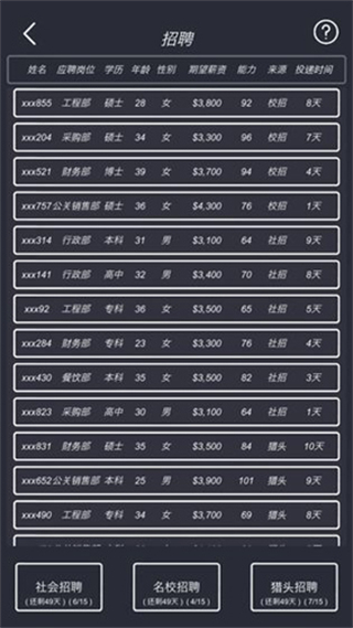 4、在招聘界面,选择筛选条件,发布招聘信息,招募合适员工。