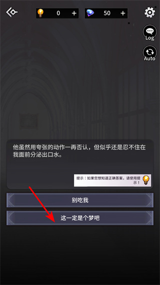 2、在剧情选择界面,点击这一定是个梦吧回应剧情,这是推进剧情分支的核心步骤,需结合当前剧情氛围,偏向世界观探索的剧情发展。