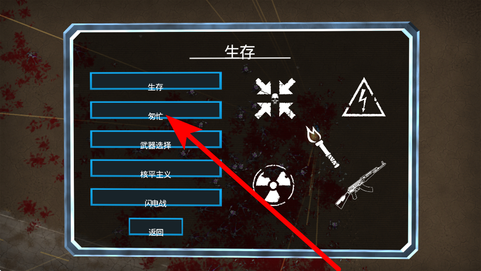 1、先选生存模式,再在其下选如生存、匆忙等子模式,进入游戏。