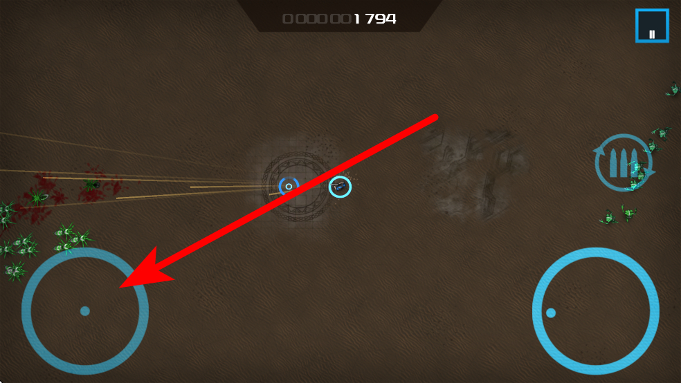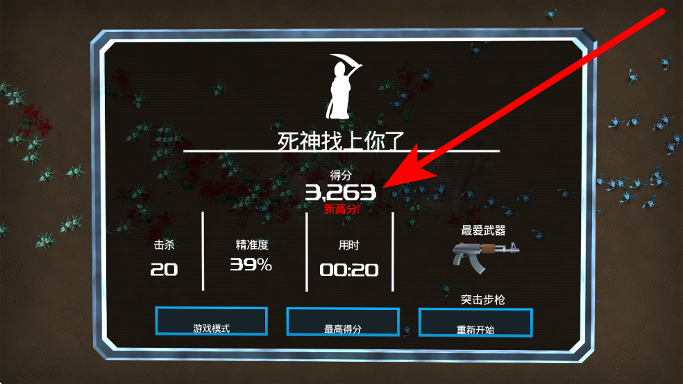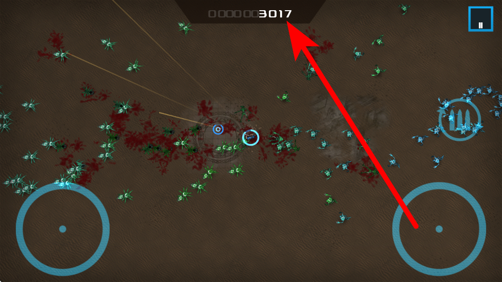 2、进入战斗,利用双摇杆操作灵活移动射击,在怪物潮中杀出通路,努力获得更高分数。