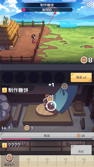 1、点击制作糖饼,积累数量,目标完成100个糖饼的制作。
