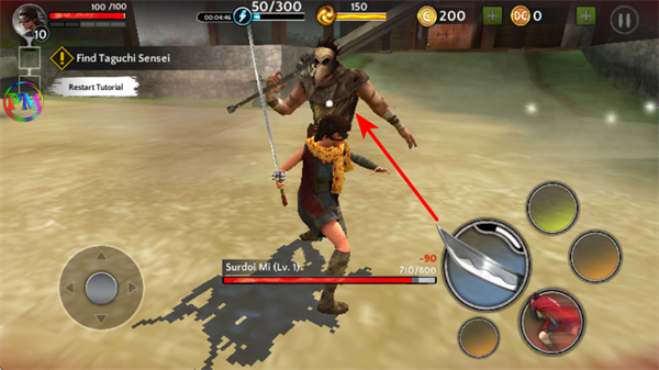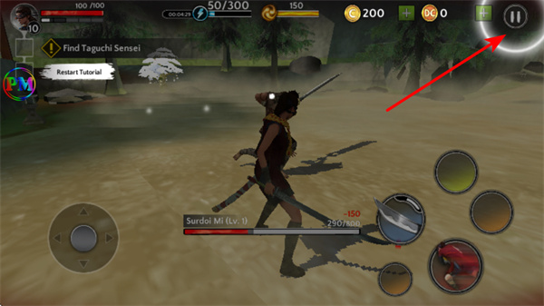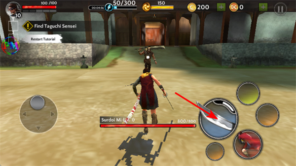 1、进入游戏后,滑动左下角虚拟摇杆操控角色移动,这是探索地图的基础操作,需沿Find Taguchi Sensei任务指引方向移动,注意敌人。