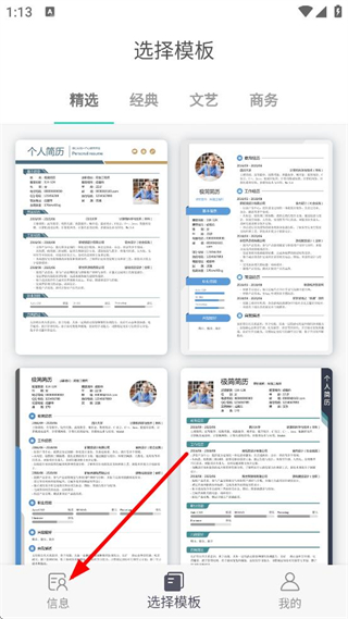 2、随后可以在APP首页,点击底部的信息,进入填写信息页面。