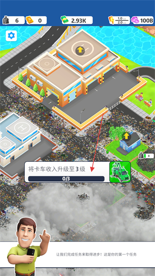 4、完成将卡车收入升级至3级的任务,推进游戏进程,发展垃圾厂规模。
