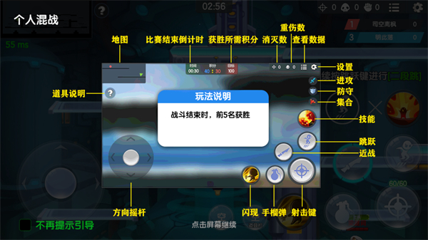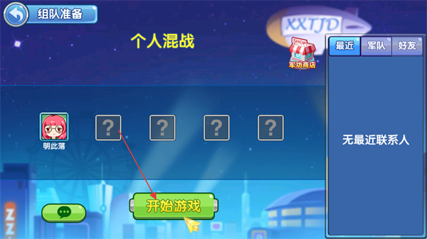 1、点击开始游戏,进入个人混战模式,开启战斗。