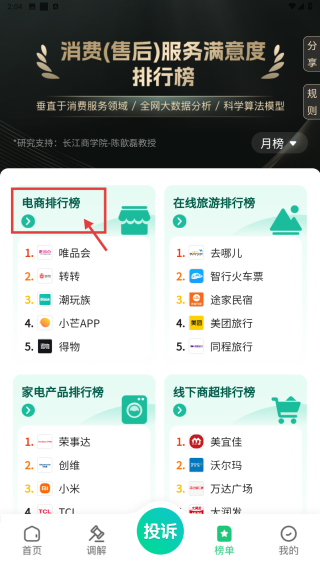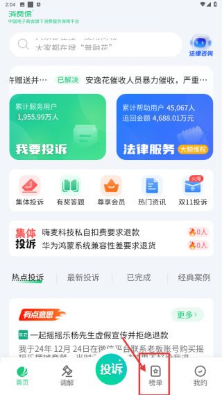 1、打开投诉类应用,点击底部榜单选项,进入榜单页面。