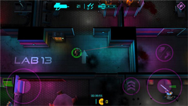 1、操控角色移动,射击敌人,利用武器造成伤害,消灭实验室中的敌人。