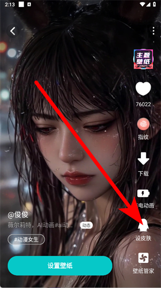 3、在壁纸详情页中,找到并点击设皮肤选项,进入皮肤设置流程。