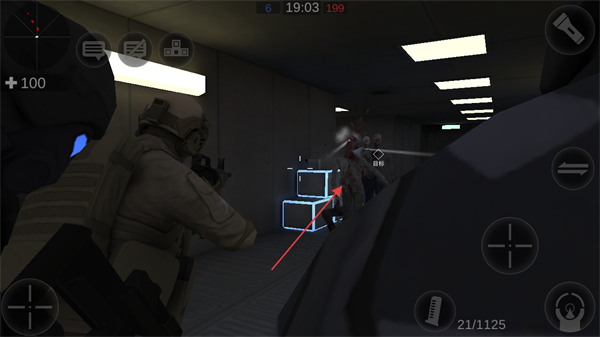 4、遭遇僵尸时,使用武器射击,击倒僵尸,与队友配合若开启多人模式占领检查点,推进游戏进程。