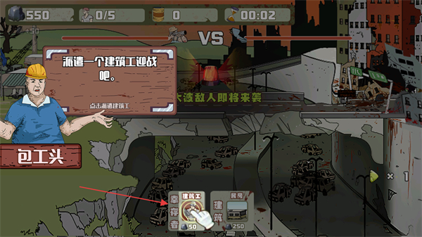 1、点击派遣建筑工,部署建筑工参与战斗。