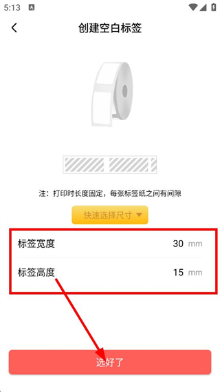 2、在空白标签页面,设置标签宽度和高度后,点击选好了,进入标签编辑器。