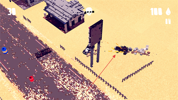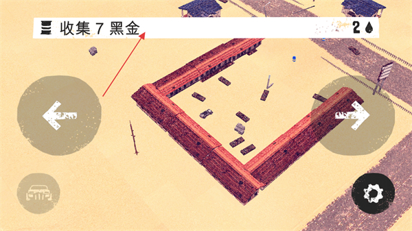 1、操控车辆在沙漠中行驶,攻击敌方车辆,收集资源,注意右上角的水滴资源代表生存资源。