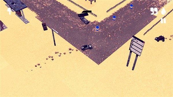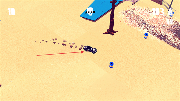 3、驾驶车辆躲避带有骷髅标记的危险区域,同时收集蓝色水桶等资源,维持生存。
