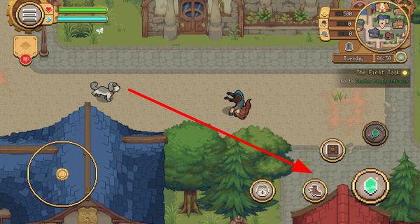 4、在城镇区域使用翻滚和背包功能,快速移动或躲避,积极与场景元素互动,高效推进冒险经营任务。