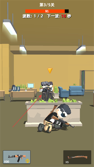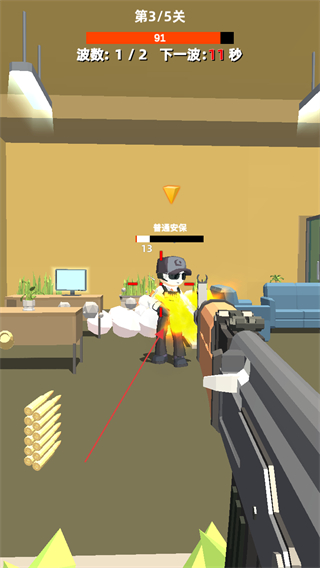 2、瞄准敌人如普通安保,射击将其击倒,完成击杀目标。