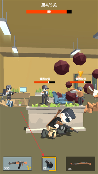 4、可使用道具如手雷攻击多个敌人,应对多波敌人进攻,进入下一关。