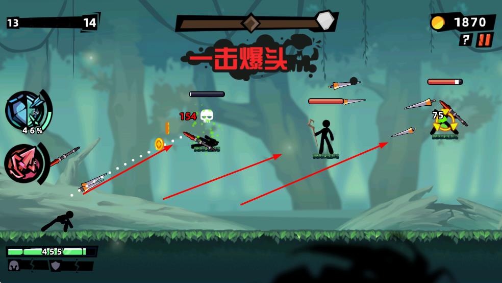 1、操控火柴人攻击敌人,达成一击爆头等战斗成就,收集金币资源。
