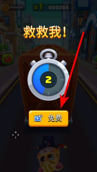 3、若不慎碰撞障碍,会出现救救我界面,可选择观看视频获得继续跑酷的机会,继续挑战以获取更高分数。
