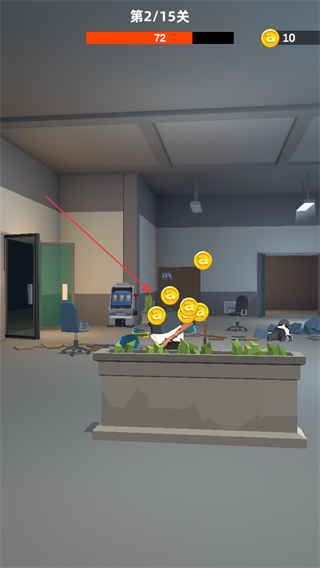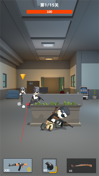 1、在第1关利用掩体躲避敌人攻击,瞄准敌人射击,消灭目标。