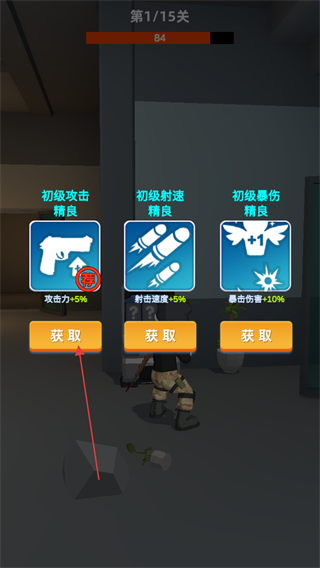 每次通关后可解锁免费强化,提升射击伤害、生命值等属性,逐步增强战斗能力,为后续挑战奠定基础。
