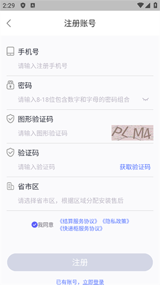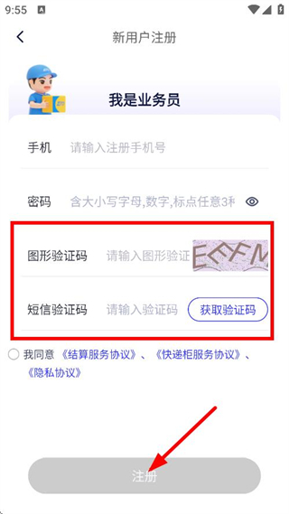 4、输入图形验证码、短信验证码,点击注册,完成新用户注册。