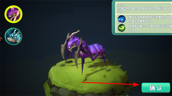 1、进入生物选择界面后,点击确认按钮,这是确定出战生物的关键操作,点击后可进入生物自定义环节,开启生物改造流程。