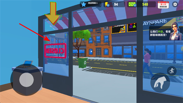 3、开启超市营业时,点击OPEN标识,这是迎接顾客的关键步骤,开启后顾客将进入超市购物,推动超市经营进程。